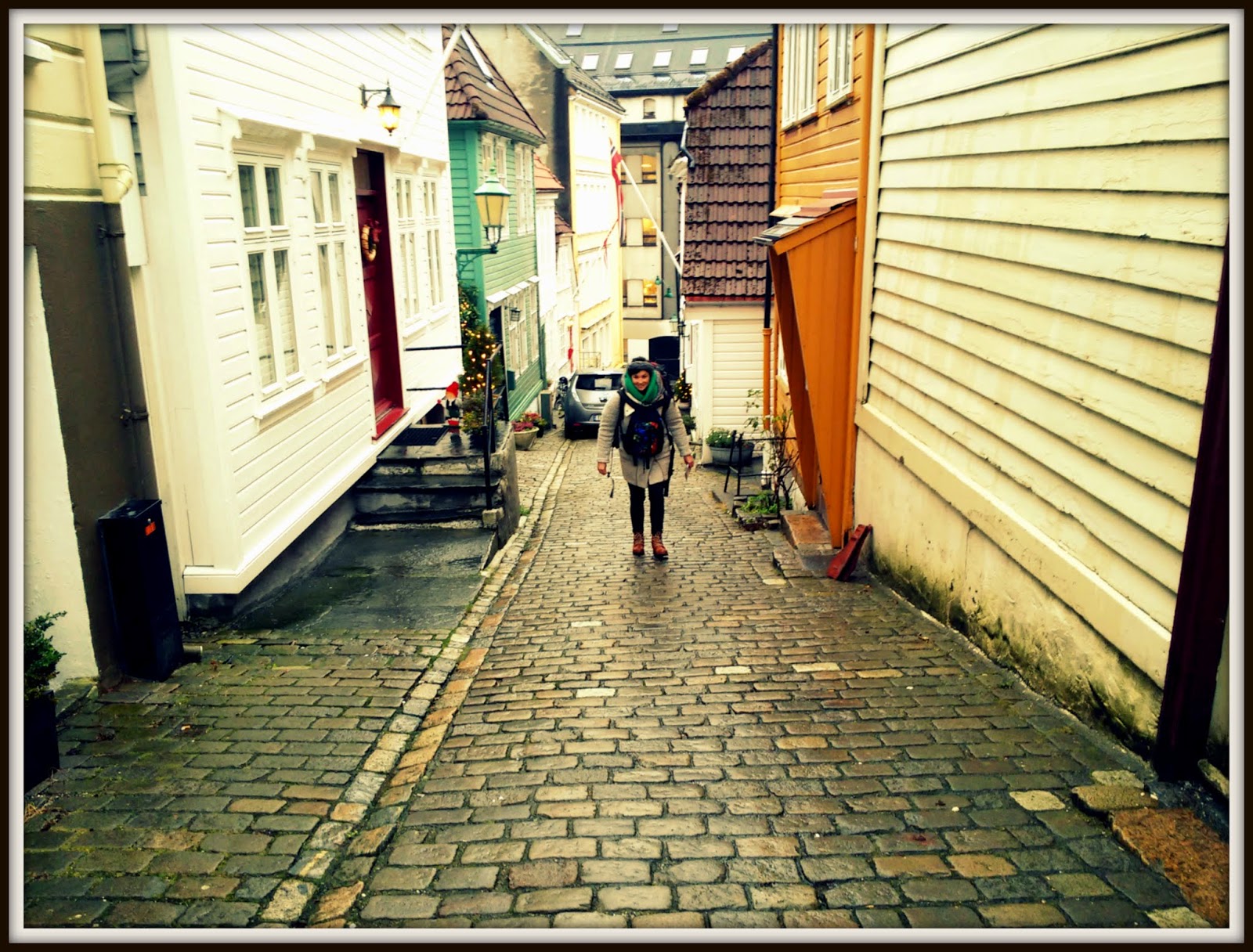 Po długim spacerze udało nam się znaleść nasz nocleg. Irytująca recepcjonistka, nieciekawy wystrój i mikroskopijna łazienka nieco pocieszyły nas, że spędzimy tu tylko jedną noc. Czym prędzej przebrałyśmy się i wróciłyśmy na miasto. Na drugim brzegu portu dumnie prezentują się henzeatyckie budynki handlowe. Drewniane Bryggen to główna atrakcja Bergen. Snujemy się drewnianymi uliczkami, obchodzimy cały kompleks dookoła... hmm, spodziewałam się, że zajmują one większy obszar. Nie ma teo złego. Skoro słońce powoli zaczyna zachodzić, postanawiamy obejrzeć malowniczy zmierzch z góry Fløyen. Wyjeżdżamy tam niesamowitą kolejką Floibanen. Malutki wagonik z lat 30-tych mknie w górę pod ostrym kątem nachylenia. Jak tylko opuszczamy tunel, pomiędzy drzewami zaczyna się przed nami rozpościerać piękny widok na zatokę. Na szczycie góry jest wybitnie zimno i... ślisko. Gdzieniegdzie leżą kupki śniegu. Bergen odsłania przed nami całe swoje piękno. Miasto rozpościera się na dużo większej przestrzeni niż przypuszczałyśmy!